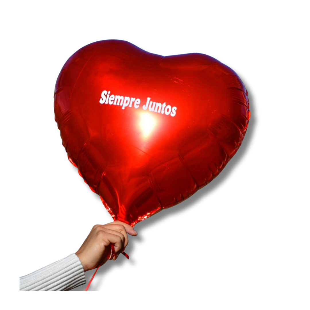 Que no pase desapercibido el típico globo metalizado en forma de corazón. Para este globo únicamente personalizamos la frase que desees agregar.