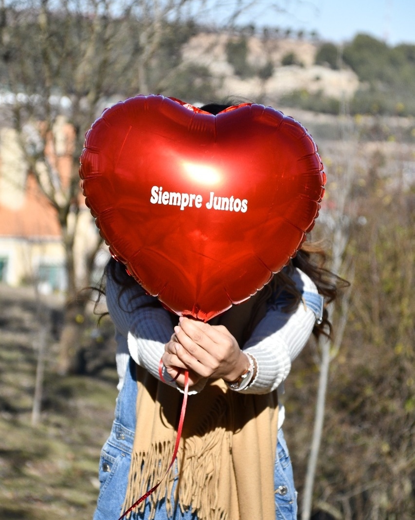 Que no pase desapercibido el típico globo metalizado en forma de corazón. Para este globo únicamente personalizamos la frase